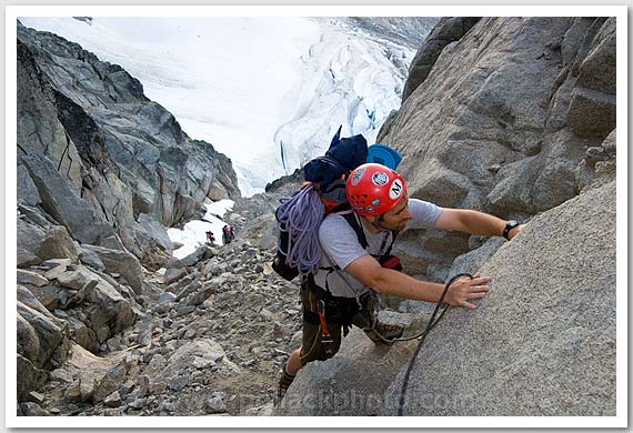 Matt Blakeney finishing the approach gully to the North Ridge of Mt. Stuart, Alpine Lakes Wilderness, Cascades, WA
